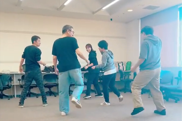 そして、最後のレクリエーションは『ダンスチャレンジ』です。チームごとにわかれて、お題のダンスを覚え練習して発表します。