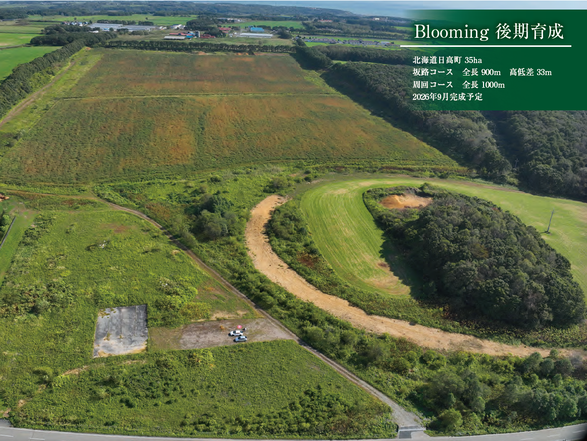 2026年9月には、日高町に65haの中期育成施設と、全長900m・高低差33mの坂路をもつ35haの後期育成施設が完成予定です。